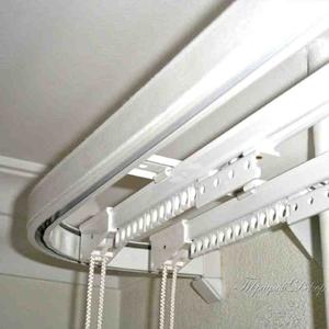 Профильные карнизы дают самые большие возможности по вариантам установки и управления шторами. Изготовленные из прочного и нержавеющего алюминия, эти карнизы могут изгибаться на специальных станках под нестандартные оконные проемы, поэтому именно профильные карнизы чаще всего используются в качестве угловых или эркерных. Минимальная высота профиля делает его практически незаметным на белом потолке, что особенно ценится поклонниками минимализма. Управление шторами в профильных карнизах может осуществляться как вручную (кордовое или цепочное управление), так и с помощью электропривода. В последнем случае управлять шторами можно с помощью пультов дистанционного управления, проводных и радиовыключаетелей, а также автоматически в зависимости от температуры и освещенности помещения.