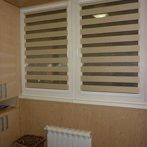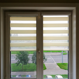 Ткань для ЗЕБРЫ состоит из прозрачных и непрозрачных горизонтальных полос, позволяя регулировать световой поток за счет нижней отвесной трубки, по которой движется ткань. Таким образом, полосы сдвигаются относительно друг друга, создавая нужную Вам степень затемнения помещения. Ткань полностью наматывается на валик, позволяя полностью открыть окно по Вашему желанию.