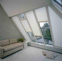 Рулонные шторы на мансардные окна — это системы штор, которые предназначены для установки на окна, расположенных в мансарде дома или под большим углом наклона. В отличии от обычных рулонных штор, в этих используются специальные боковые направляющие, которые не дают полотну провисать и плотно прижимают его к створке окна, что полностью предотвращает проникновение солнечных лучей.
