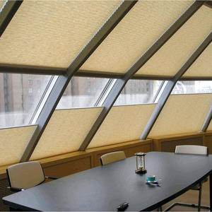 Плиссе представляет собой тканевое полотно (полиэстер) с заложенными (на сгибах спаянными) складками шириной 20 мм. Варьирование тканей(полиэстер),разных по текстуре, плотности, расцветкам, в сочетании с волнистой поверхностью придает шторам особый шарм, а помещению, в котором они используются, неповторимый стиль.